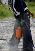 ゴム製で出来ている球体の防音室(内側旋回翼付)とジャバラ構造が、ブレーカーから出る排気と振動で膨張・